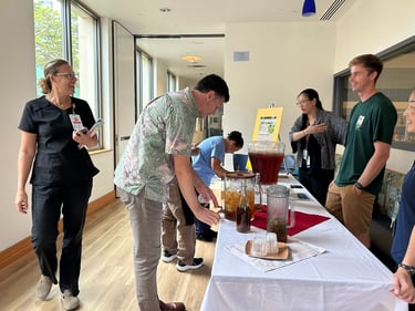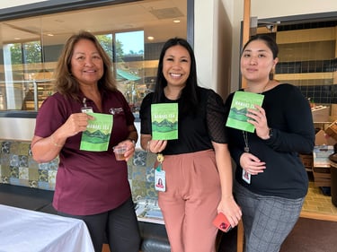 On October 22, the Nutrition Services team hosted another successful tasting event, this time featuring Hawaii-grown Mamaki tea. Thanks to special blends created by Ian Kennedy of Strata Farms LLC, tasters got a chance to sip four refreshing iced teas – natural, honey sweetened, lemon grass, and mint-flavored. Ian and Selina Chen of Makan Pray Aloha shared valuable insights into the health benefits of Mamaki tea and how it’s grown, while attendees had the opportunity to purchase take-home pouches at a discounted price. Ian also generously offered to donate Mamaki tea seedlings to the first 50 attendees who signed up.